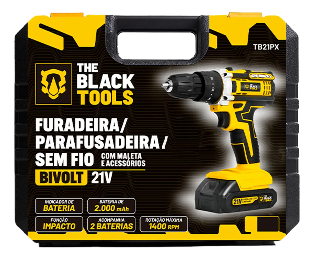 A furadeira The Black Tools TB-21PX a bateria de 21V é uma ferramenta poderosa e versátil projetada para atender às necessidades de perfuração em diversos materiais;